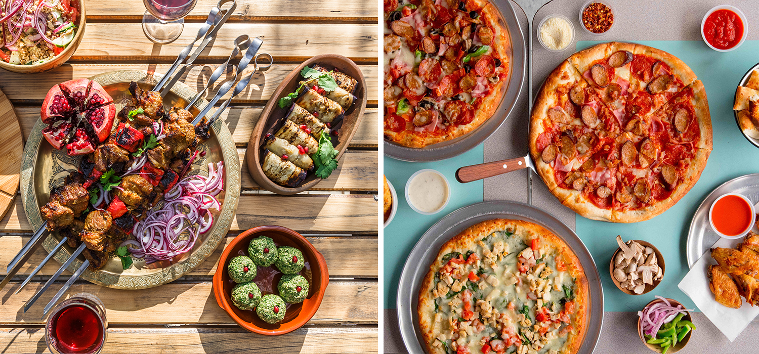 Craving a pizza? You are at the right place; our pizzas are topped with the freshest ingredients and melted cheese that will leave you wanting more. For those looking for a burger treat, look no further! Take a bite into our juicy burgers, stacked with all your favourite toppings. If you're in the mood for something a little different, our kebabs are the way to go. Tender and flavourful, our succulent kebab meats are marinated to perfection and paired with fresh vegetables and aromatic spices.